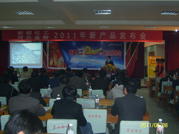 2011年4月8日,河北金橋農(nóng)資公司聯(lián)合四川新都化工有限公司在景縣景州賓館小禮堂召開了新產(chǎn)品發(fā)布會(huì)。此次會(huì)議特邀景縣電視臺(tái)聯(lián)合錄制并全程報(bào)道,會(huì)議主要目的是讓農(nóng)資經(jīng)銷商了解控釋肥的,推廣控釋肥,旨在讓農(nóng)民減少投資、杜絕浪費(fèi),早日用上控釋肥。參加本次會(huì)議的代表主要是來自滄州、衡水兩個(gè)市的經(jīng)銷商及新聞媒體-----《北方農(nóng)資》的記者、部分農(nóng)戶等共計(jì)260多人。